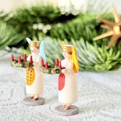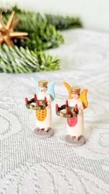 小さな粘土細工 アドベントキャンドルを持つ光の天使