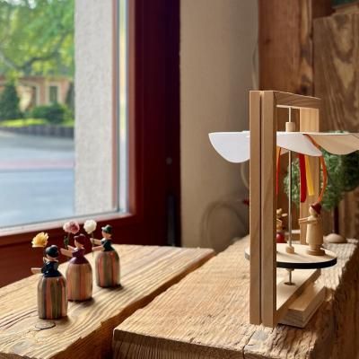 ヒュブッシュ工房内でも窓辺にディスプレイされ、