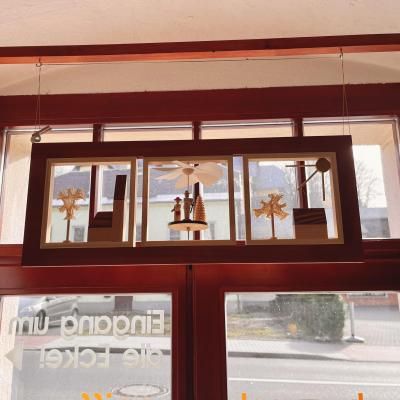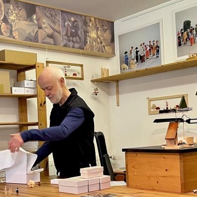 ヒュブッシュ工房内でも窓辺にディスプレイされ、